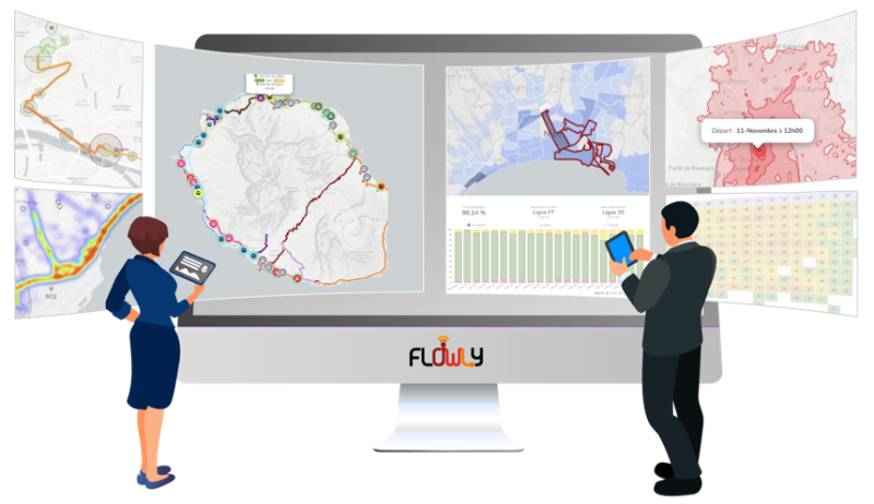 Flowly Data : plateforme SaaS permettant d'agréger et de visualiser l'ensemble des données produites sur votre réseau de transport public : GTFS, SAE, billettique, vélo, TAD, etc.